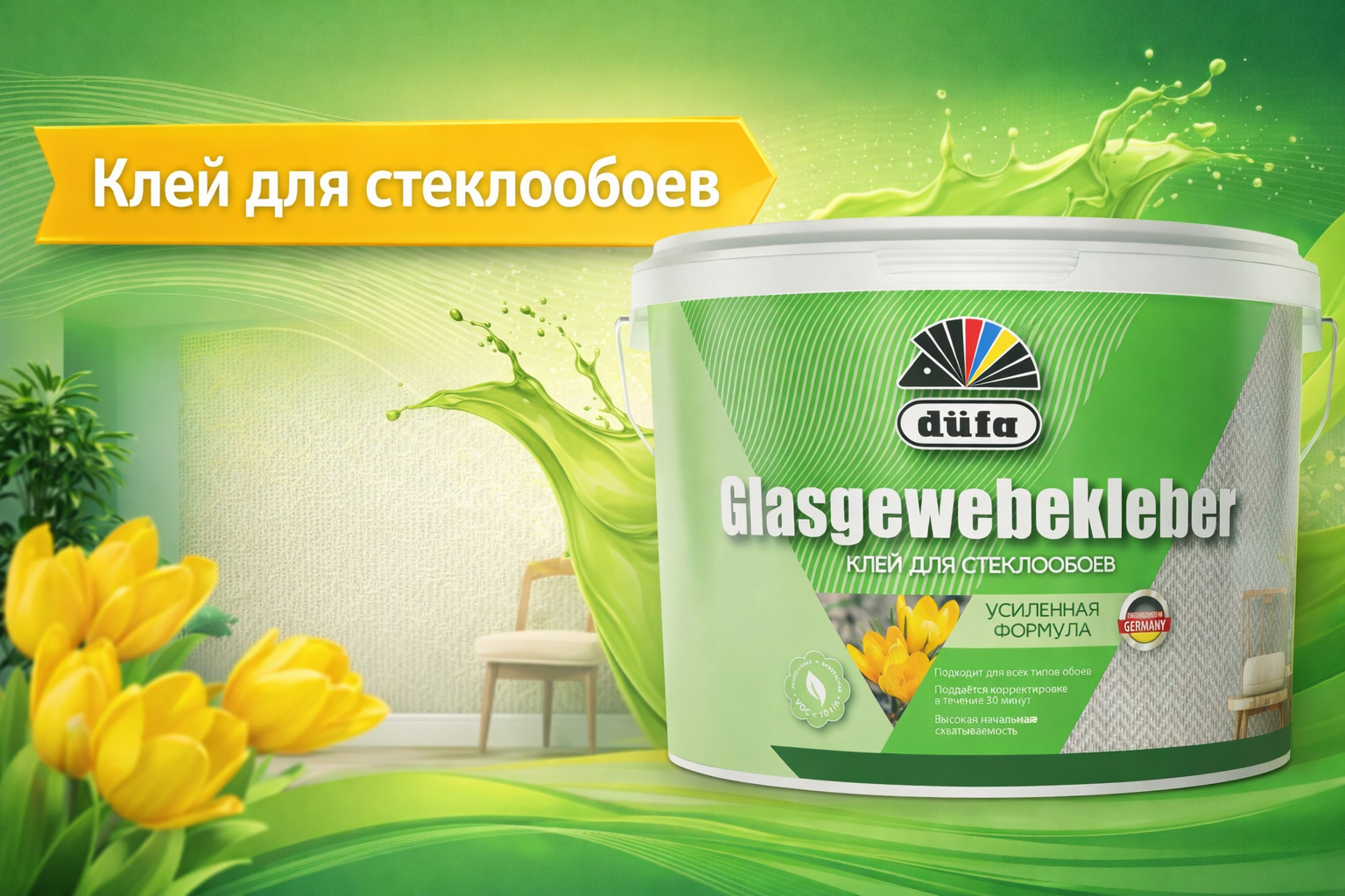 Клей для стеклообоев — это профессиональное решение для качественной и долговечной отделки стен и потолков. Продукт разработан специально для надежного приклеивания стеклообоев, малярного стеклохолста и тяжелых видов обоев, обеспечивая прочное сцепление и удобство в работе.